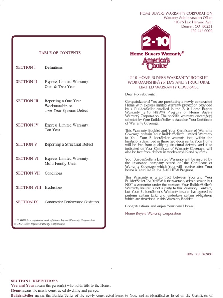 Home Warranties For Homeowners Builders Real Estate 2 10 Hbw